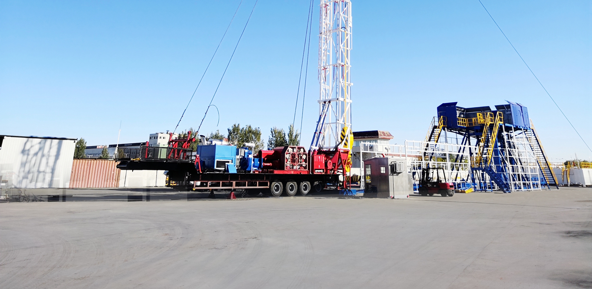 拖裝鉆機(jī)的動(dòng)力、絞車、井架、游車系統(tǒng)及傳動(dòng)機(jī)構(gòu)全部裝載于半掛底盤上,移運(yùn)時(shí)用牽引車拖掛移運(yùn)至現(xiàn)場,該類產(chǎn)品對于提高鉆井作業(yè)搬遷效率具有很大的優(yōu)勢,適應(yīng)于中淺井鉆井作業(yè)。